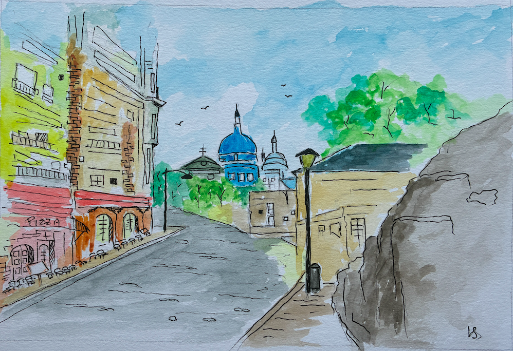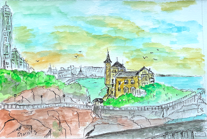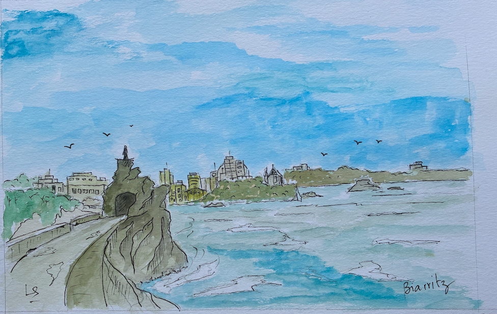 Aquarelle à Biarritz , En Chine et Sacré Coeur